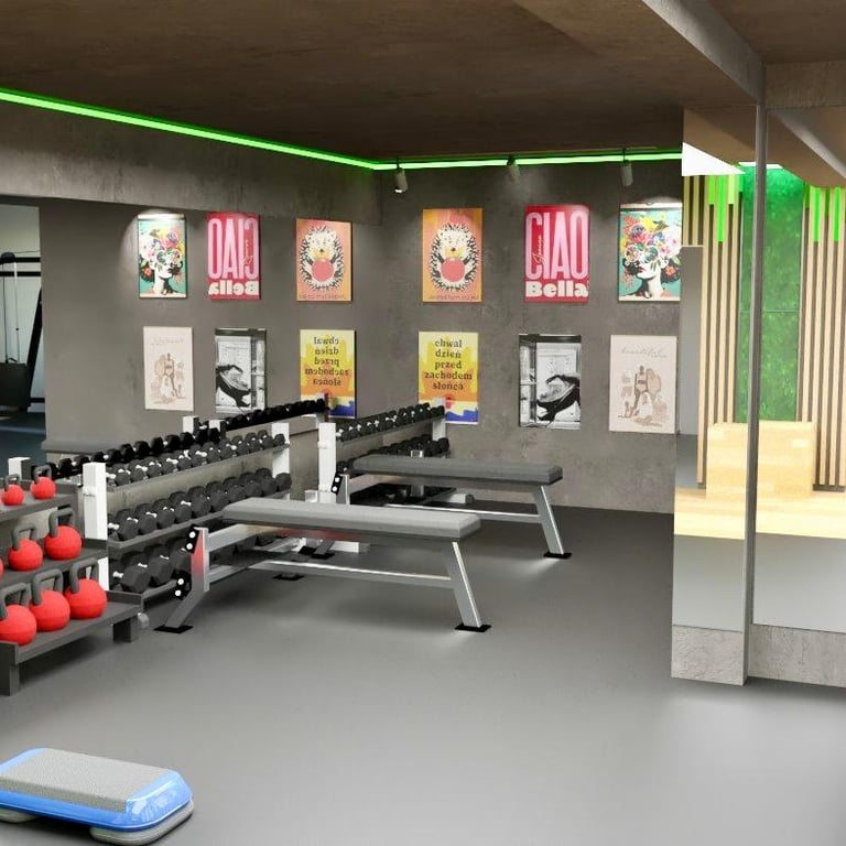 Nowoczesna siłownia stworzona z myślą o kobietach to przestrzeń, w której funkcjonalność spotyka się z estetyką, a komfort użytkowniczek jest absolutnym priorytetem. Projekt wnętrza łączy nowoczesny design z ciepłą, przyjazną atmosferą, sprzyjającą zarówno intensywnemu treningowi, jak i regeneracji.