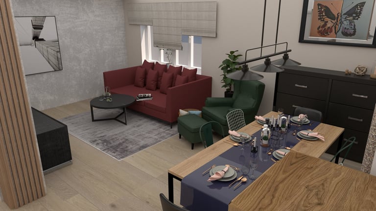 W salonie stworzonym przez Inspire Design panuje atmosfera wyrafinowanego komfortu. Przestronna przestrzeń, wypełniona naturalnym światłem, zaprasza do relaksu i spotkań z najbliższymi. Eleganckie meble, miękkie dywany i delikatne dodatki tworzą harmonijną kompozycję, która ożywia wnętrze. Dopełnieniem są starannie dobrana kolorystyka i nowoczesne akcenty, które nadają salonowi wyjątkowego charakteru. Zadowolenie klienta jest dla nas priorytetem, dlatego dbamy o każdy detal, by stworzyć dla nich przestrzeń, która spełnia ich oczekiwania i przynosi radość każdego dnia.